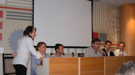 Já o engenheiro Sidney Machado, representante do Geo-Rio e tesoureiro da CBMR, tratou do tema "Prática de Estabilização das Encostas Rochosas do Rio de Janeiro". Uma discussão sobre o "Caso de Ruptura no Condomínio Residencial Vila Isabel" foi estabelecida pelo engenheiro Luiz Otávio Vieira e o geólogo José Brandão, ambos da Geo-Rio. Na foto acima mesa do debate coordenado pelo ex-presidente da ABMS , Alberto Sayão. Da esquerda para direita: Maria Alice Ferreira (DTG do Clube de Engenharia), Anna Laura Nunes, Sidney Machado, Alberto Sayão, Luiz Otávio Vieira e José Brandão.
