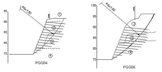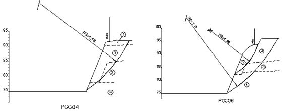Através do conhecimento das camadas foram coletas amostras de solo e executados ensaios triaxiais. A execução dos ensaios foi essencial para execução de uma obra projetada com maior segurança e economia. Nas seções apresentadas a seguir pode ser verificado o resultado dos estudos efetuados em duas seções, onde são apresentados os fatores de segurança (FS), nas condições da escavação pretendida.
