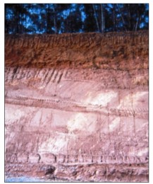 (Nítida diferenciação entre os solos superficiais laterizados e os solos residuais saprolíticos mais profundos)