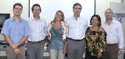 A abertura anual do Programa de Pós-Graduação em Engenharia Civil (PEC), da Universidade Federal do Rio Grande do Norte (UFRN), com apoio do PEC e da ABMS Núcleo Nordeste, contou com palestras dos professores Alberto Sayão, ex-presidente da ABMS, e Anna Laura Nunes, presidente do Núcleo Rio de Janeiro da entidade. Sayão apresentou o livro "A História da Engenharia Geotécnica no Brasil", do qual foi o editor. A palestra de Anna Laura Nunes teve como tema os "Desastres Recentes na Região Serrana do Rio de Janeiro". O encontro aconteceu no dia 17 de março, em Natal (RN), e reuniu mais de 60 participantes, entre professores, alunos de pós-graduação e representantes da comunidade geotécnica local. "Os assuntos das palestras além da grande relevância, tiveram uma acolhida muito grande pelo público presente, que abrilhantaram o evento com entusiasmados debates ao final", conta Ricardo Severo, tesoureiro do Núcleo Nordeste da ABMS. Na foto, da esquerda para a direita, estão Yuri Costa (UFRN); Olavo Santos Jr (UFRN); Anna Laura Nunes (COPPE-UFRJ); Alberto Sayão (PUC-Rio); Régia Lúcia Lopes (IFRN) e Ricardo Severo (IFRN).