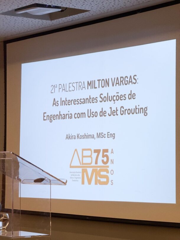 Nos dias 8 e 9 de dezembro, o Núcleo Norte da ABMS recebeu a tradicional Palestra Milton Vargas, ministrada pelo engenheiro Akira Koshima. O tema apresentado foi “As interessantes soluções de engenharia com uso de Jet Grouting”, abordando aplicações da tecnologia em ambientes urbanos e obras subterrâneas. No dia 8, a palestra foi realizada na Unidade Cesupa, em Belém (PA). E no dia 9, no Auditório Carlos Afonso (sede do CREA-AM), em Manaus (AM).